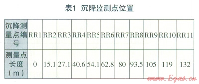 整個(gè)測(cè)試管道沉降測(cè)量點(diǎn)的編號(hào)與水平方向的長(zhǎng)度見表1所示。