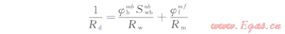 裂縫型儲層的含氣飽和度計算方法比較復(fù)雜,主要是因為此時裂縫對導(dǎo)電的貢獻比較大,計算含氣飽和度時必須考慮裂縫對電阻率的影響。本次采用的方程為: