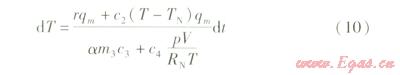 式(2)表示在壓力和體積不變的條件下,儲罐內(nèi)氣體溫度變化和質(zhì)量變化的關(guān)系。