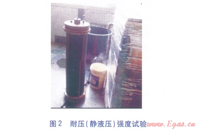 依據(jù)《規(guī)程》5.1.9條規(guī)定,每次試驗需選擇2個現(xiàn)場檢查出來有疑問的接頭,一個接頭做耐壓(靜液壓)強度試驗(見圖2),另一個接頭選取翻邊不合格段所對應(yīng)的管段作取樣件(圖3中的黑色部分),做拉伸性能試驗(見圖3)。試驗的方法及參數(shù)遵照表1的相關(guān)規(guī)定。其中耐壓(靜液壓)強度試驗時,因管道材質(zhì)為PE100,所以環(huán)應(yīng)力s取5.4MPa。管內(nèi)試驗壓力按下式計算: