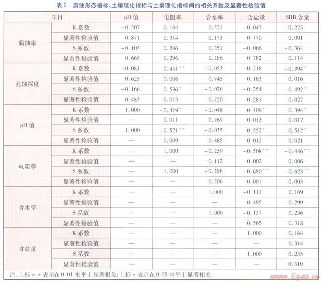 ⑥土壤各理化指標(biāo)之間具有不同程度的相關(guān)性,說明各因素并不是單獨存在的,而是相互關(guān)聯(lián)、相互作用的,使得不同地區(qū)的腐蝕作用變化非常大。
