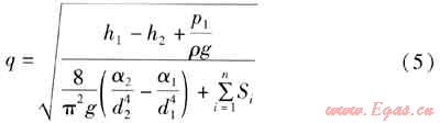 式中d1——斷面1處的管道內(nèi)直徑,m
