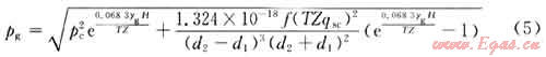 煤層氣井與常規(guī)氣井開采最大的不同是煤層氣產(chǎn)量較低,且相對(duì)常規(guī)氣井來(lái)說井口壓力較低,所以井口、套管、油管所用的級(jí)別都較低。因此,在利用式(5)計(jì)算煤層氣井氣柱段壓力時(shí),常忽略第二項(xiàng)所造成的影響。又由于實(shí)測(cè)套壓較低,在實(shí)際的計(jì)算中可以采用以下近似計(jì)算式: