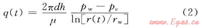 式中q(t)為泄漏率,m3/d;d為水平方向的滲透率,mD;h為滲透厚度,m;pw為井內壓力,kPa;pe為氣液界面壓力,kPa;μ為氣體黏度,Pa·s;r(t)為氣體前緣位置,m;rw為井內半徑,m。
