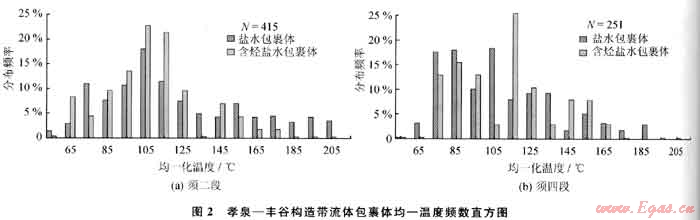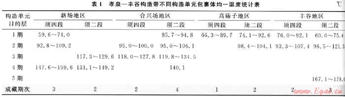 與烴類流體包裹體同幕的鹽水流體包裹體均一溫度不僅可以用來作為古溫度的近似值和熱事件的標(biāo)志,而且還可以用作油氣成藏幕次劃分的有效依據(jù)。