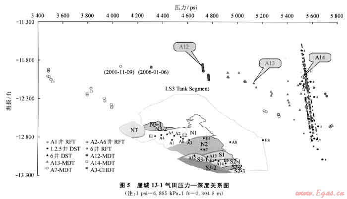 摘要:位于瓊東南盆地西部的崖城13-1氣田是中海石油(中國)有限公司的一個(gè)對外合作海上大氣田,自1996年投產(chǎn)以來,一直肩負(fù)著向香港特別行政區(qū)和海南省供氣的任務(wù)。為提高該氣田的天然氣采收率、滿足下游用戶不斷增長的用氣需求量,基于前人的研究成果,結(jié)合大量實(shí)鉆資料,對該氣田的天然氣富集條件以及成藏模式進(jìn)行了深入研究。結(jié)論認(rèn)為,崖城13-1氣田為基底隆起背景上發(fā)育起來的披覆背斜,因頂部遭受削蝕作用而形成的構(gòu)造-巖性地層復(fù)合氣藏,氣層厚度大、分布穩(wěn)定、產(chǎn)能高,屬高豐度大型氣田。該氣田同時(shí)具有:①有多套烴源巖;②圈閉形成早;③儲(chǔ)層厚度大、物性好、產(chǎn)能高;④超壓蓋層等優(yōu)越的天然氣富集條件。但該氣田圈閉范圍內(nèi),不同斷塊氣、水界面深度不一致,并且構(gòu)造高部位——南部S3-2含氣充滿度低,致使該氣田的成藏規(guī)律復(fù)雜化,通過斷塊間的壓力干擾研究,結(jié)果證明斷層對天然氣具有明顯的封堵作用。研究成果為該氣田后期管理提供了決策依據(jù)。