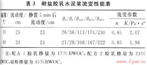 2.3.4耐鹽膠乳水泥漿綜合性能研究
