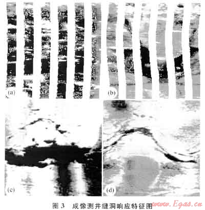 根據(jù)溶洞的分布特征及與孔、縫間的關(guān)系,可分為孔隙性溶洞和裂縫性溶洞??紫缎匀芏醇慈芏词侨芸妆贿M(jìn)一步溶蝕擴(kuò)大后形成(圖3-a),這些溶洞周?chē)C芗植既芸祝?、洞也常呈層狀分布,相互間連通性好;裂縫性溶洞即溶洞是構(gòu)造縫及少量成巖壓溶縫被局部溶蝕擴(kuò)大形成的,溶洞常沿裂縫呈串珠狀或長(zhǎng)條狀分布,縫、洞連通性好(圖3-b、c、d)。以小型溶洞為主,占82%,中型溶洞占13%,大型溶洞占5%。在白云巖層段中、小型溶洞相對(duì)發(fā)育,而在石灰?guī)r層段大型溶洞發(fā)育。在EMI測(cè)井剖面中,大型溶洞的高度可達(dá)0.5m。在鉆井中常出現(xiàn)鉆時(shí)降低、放空、井漏顯示,如某井放空0.3m,EMI測(cè)井反映溶洞特征明顯(圖3-c)。在不同的構(gòu)造部位,溶}同的發(fā)育程度差異明顯,V3井區(qū)Zone1-Zone2的溶洞層段明顯比V1、V2井區(qū)發(fā)育,厚度為V1、V2井的1.5~2.0倍,表明從構(gòu)造的西南段向東北段溶蝕作用有減弱的趨勢(shì)。同時(shí),據(jù)巖石學(xué)特征、溶蝕孔洞內(nèi)幾乎沒(méi)有充填以及溶孔、溶洞與裂縫的密切關(guān)系,認(rèn)為溶蝕作用是在構(gòu)造裂縫形成之后發(fā)生的。