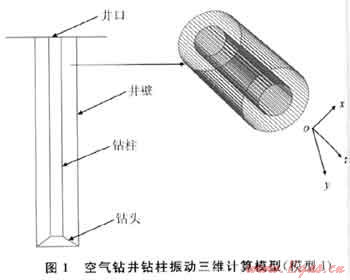 根據(jù)Wolf S.F.等人的研究成果[2~4],可以推斷鉆柱斷裂主要是由鉆柱振動引起的交變應(yīng)力所造成的,屬于應(yīng)力疲勞損壞??諝忏@井與常規(guī)鉆井液鉆井不同的地方主要在于所采用的鉆井液流體不同,因此對鉆柱振動特性有了較大的影響。針對空氣鉆井條件下的鉆柱振動問題,建立了有限元模型,重點考察了空氣鉆井中鉆柱長度、鉆井液阻尼等對鉆柱振動特性的影響,以及底部鉆具受到周期性擾動時,鉆柱產(chǎn)生的橫向位移響應(yīng)情況。