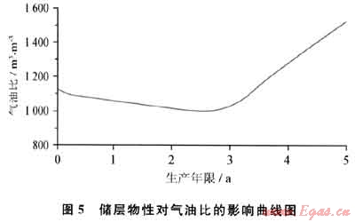 從氣油比的變化曲線可以看出(圖5),隨著氣井的開采,氣油比會(huì)降低,但最終氣油比會(huì)迅速增大。