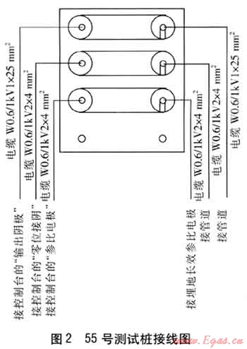 ③ 55號測試樁電位測量數據為0V。