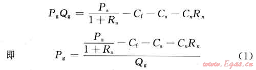 從另一方面看,該單位產(chǎn)品所用天然氣產(chǎn)生的使用經(jīng)濟(jì)價值應(yīng)為單位天然氣用于該用途的使用經(jīng)濟(jì)價值與生產(chǎn)該單位產(chǎn)品所消耗天然氣量的乘積(PgQg),它們的數(shù)值應(yīng)相等: