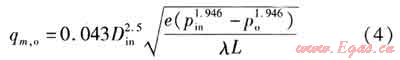 引入流量效率因數(shù)e,反映局部阻力的影響。無(wú)局部阻力的直管段取1.00,運(yùn)行較好的管段取0.95,運(yùn)行一般的管段取0.92,運(yùn)行不好的管段取0.85。計(jì)算管段出口蒸汽質(zhì)量流量qm,o的計(jì)算式為: