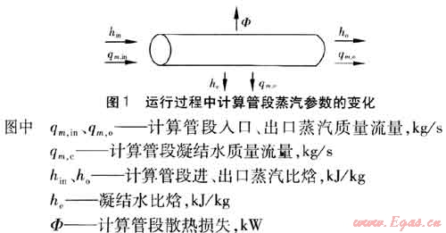 飽和蒸汽段沿途有凝結(jié)水排出,熱量損失包括散熱損失和凝結(jié)水的熱量。過(guò)熱蒸汽段無(wú)凝結(jié)水排出(qm,c=0),熱損失僅為散熱損失。