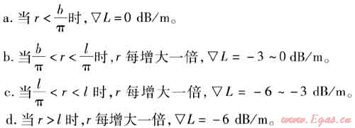 面聲源隨傳播距離增加產(chǎn)生的聲壓級衰減值與面聲源形狀有關(guān)。如某鍋爐房的風(fēng)機房,設(shè)風(fēng)機房長為f,寬為b,隨著傳播距離r的增加,聲壓級衰減梯度▽L與r的關(guān)系為: