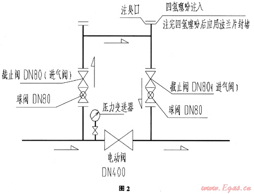 (2) 采用在待投產(chǎn)天然氣次高壓管道注臭口加臭既節(jié)省臭劑又保證新置換管道的含臭量合格。