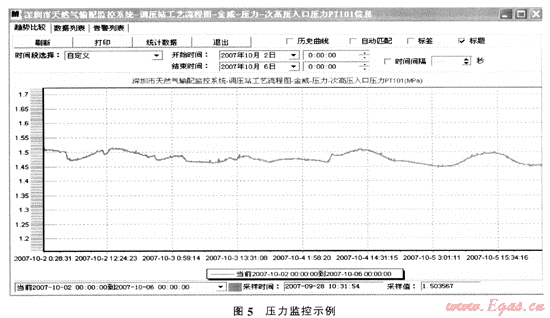 從圖5中可見.在3天內(nèi)壓力從1.51MPa降至1.45MPa,存在微漏,通知場站運行部檢查,發(fā)現(xiàn)進站閥門法蘭處微漏。