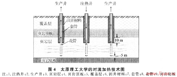 利用高溫烴類氣體對流加熱油頁巖開采油氣技術(shù)是太原理工大學發(fā)明的一種原位開采技術(shù)(圖4)。