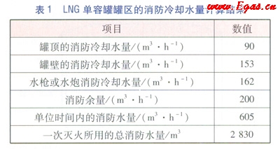 該LNG單容罐罐區(qū)的消防冷卻水量計(jì)算結(jié)果見表1。