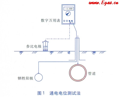 城鎮(zhèn)燃氣管道多為埋地敷設,由于土壤中含有水分、空氣、酸、堿、水溶性礦物鹽以及微生物,這些因素都會使金屬管道發(fā)生腐蝕。金屬腐蝕直接和間接造成了巨大的經濟損失,因此,必須采取有效的防腐措施,實踐證明控制管道腐蝕的主要方法是采用防腐層和陰極保護。對金屬管道的陰極保護進行測試和評價,可以及時發(fā)現(xiàn)管道腐蝕和安全隱患,最大程度降低經濟損失。采用犧牲陽極和3PE防腐層聯(lián)合保護的次高壓燃氣管道,通常采用通電電位測試法和斷電電位測試法進行陰極保護測試。