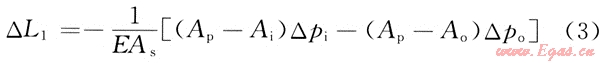 當(dāng)測試管柱內(nèi)流體流動而環(huán)形空間的流體不流動一時,其管柱長度變化△L3為:
