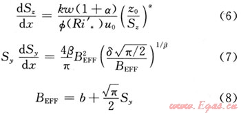 垂直和水平特征擴(kuò)散參數(shù)控制方程[3]: