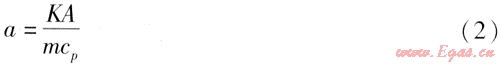由于冷水溫度不斷變化,室內(nèi)空氣平均溫度等也會(huì)出現(xiàn)波動(dòng),因此K不為常量。該工程冷水機(jī)組關(guān)機(jī)與開機(jī)的時(shí)間間隔約8h,冷水溫升較小,且室內(nèi)空氣平均溫度等變化不大,對(duì)傳熱系數(shù)的影響較小,因此在計(jì)算中將K視為常量。對(duì)于確定的空調(diào)系統(tǒng),A、m、cp均為定量,令: