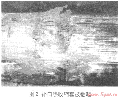 (2) “3PE”防腐層需采用聚乙烯熱收縮套補(bǔ)口,補(bǔ)口的凹陷或搭接處的凸起部分,使其在穿越時容易被劃傷甚至被拉脫擠落(圖2)。