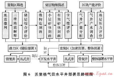 第三,依據區(qū)帶特征,開展針對性研究,進一步落實富集區(qū):①蘇里格中區(qū)——將高精度二維地震和有限的三維地震資料相結合,預測砂巖厚度及含氣性;描述河道砂體展布范圍,刻畫有效儲層分布特征,進行相對富集區(qū)篩選;②蘇里格東區(qū)——在分析開發(fā)井的基礎上,靜態(tài)與動態(tài)結合,對盒8段、山1段和下古生界進行再認識,上、下古生界綜合考慮,落實富集區(qū);③蘇里格氣田西區(qū)——深化地層水分布規(guī)律研究,綜合應用地質、測井、測試、地層水分析及生產動態(tài)等資料,多學科交叉滲透,在統(tǒng)一的技術思路下對蘇里格氣田西區(qū)氣水關系進行一體化研究,通過“避水找氣”,落實富集區(qū)。