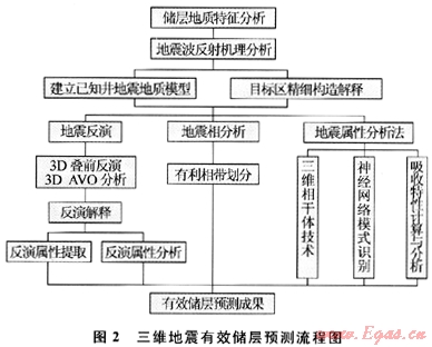 其次,重點區(qū)實施三維地震、強化儲層預測。在二維地震選區(qū)基礎上,優(yōu)選潛力區(qū)開展三維地震。充分利用三維資料信息量大、地質內涵豐富的優(yōu)勢,以主河道帶預測為基礎,以有效儲層預測為核心,以疊前技術為主,以疊后技術為輔;進行主河道帶預測、儲層及含氣性預測,并利用三維可視化手段對儲層及有效儲層進行精細刻畫;最后通過綜合評價優(yōu)選高產富集分布區(qū)(圖2)。