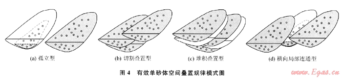 密井網解剖表明,蘇里格氣田盒8段儲層有效單砂體空間分部類型有4種(圖4):