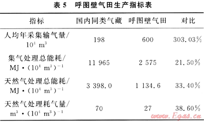 地面工程設(shè)計與工藝技術(shù)方面突出了規(guī)模性、適應(yīng)性,先進性、科學(xué)性、安全性,以經(jīng)濟效益為指導(dǎo)思想,采用了8項新工藝新技術(shù),對地面工程設(shè)計進行了優(yōu)化,與國內(nèi)同類氣藏相比(表5),各項指標(biāo)均達(dá)到先進水平[5~6]。