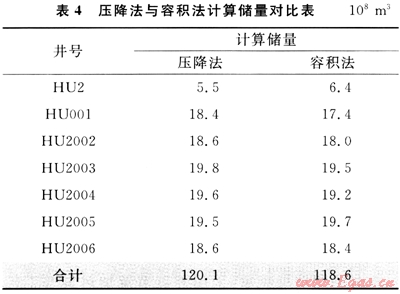 根據(jù)單井初期不穩(wěn)定試井資料,將氣井初期地層壓力折算至統(tǒng)一海拔深度,扣除投產(chǎn)時間晚2a的HU2005井和HU2006井,其余井壓力系數(shù)在0.9716~0.9736之間(表3),相對偏差較小,在0.05%~0.1%,說明未投產(chǎn)前各井同屬一個壓力系統(tǒng)。