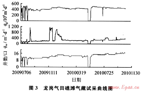 針對(duì)龍崗地區(qū)礁灘氣藏高溫、高壓、高含硫特點(diǎn)開(kāi)展的開(kāi)發(fā)技術(shù)攻關(guān)取得重要進(jìn)展,有力支撐了龍崗氣田試采工程建設(shè)和投產(chǎn)。開(kāi)發(fā)地質(zhì)綜合評(píng)價(jià)研究深化了對(duì)龍崗氣田礁灘氣藏儲(chǔ)層非均質(zhì)性、氣井產(chǎn)能、氣田水分布特征的認(rèn)識(shí),為試采區(qū)合理開(kāi)采奠定了基礎(chǔ);形成了分層酸化合層開(kāi)采的完井管柱優(yōu)化技術(shù)和150℃高溫凝膠酸和轉(zhuǎn)向酸酸液體系,使超深、高溫、高壓、高含硫氣井完井與儲(chǔ)層改造配套技術(shù)不斷完善,支撐了龍崗氣田試采區(qū)單井日產(chǎn)量最高達(dá)80×104m3氣井的產(chǎn)能建設(shè);建立了井筒安全屏障及實(shí)際工況油套管柱安全分析技術(shù),確保了投產(chǎn)的高含硫氣井安全可靠生產(chǎn);形成和完善了酸性天然氣腐蝕與防腐配套技術(shù),解決了高含硫氣藏井下與地面系統(tǒng)整體防腐問(wèn)題;高含硫天然氣凈化技術(shù)的配套和完善,支持建成了國(guó)內(nèi)單系列最大規(guī)模的脫硫、硫磺回收和尾氣處理裝置,為龍崗氣田試采工程一次投產(chǎn)成功提供了有力保障。龍崗氣田礁灘氣藏投產(chǎn)氣井井均日產(chǎn)氣量達(dá)到25×104m3,成為四川盆地有史以來(lái)單井日產(chǎn)量最高的氣田(圖3)。
