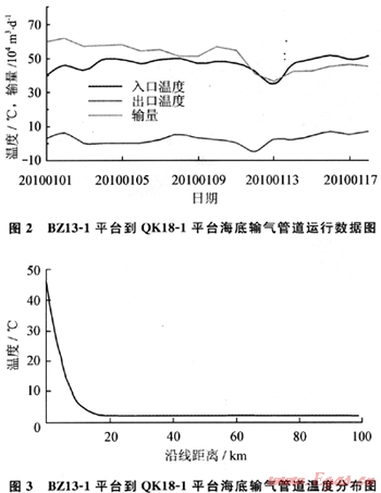 由圖3可知,從BZ13-1平臺到QK18-1平臺海底輸氣管道的天然氣溫度下降迅速,在大約10km處就基本接近海水溫度。渤西上岸輸氣管道也有類似的規(guī)律。