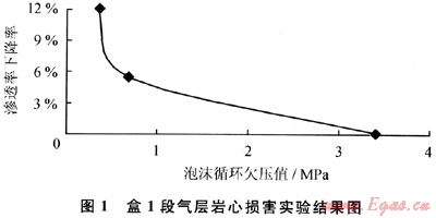 為了盡可能地減小對儲層的傷害,通過室內實驗對潛在的傷害機理進行了評估。收集了盒1段氣層的巖心資料進行了具體的儲層傷害分析。