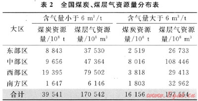 含氣量大于6m3/t是煤礦瓦斯爆炸的引發(fā)點(diǎn),以含氣量6m3/t作為界限,大于6m3/t的煤層氣資源量約為19.76×1012m3,占全國(guó)煤層氣資源量的54%,其煤炭資源量為1.62×1012t,僅占29%。如果以含氣量大于6m3/t作為實(shí)施“先采氣,后采煤”的界線,既不影響“十一五”煤炭產(chǎn)量,又可遏制瓦斯災(zāi)害(表2)。