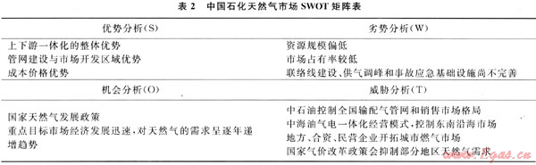 2 中國(guó)石化天然氣市場(chǎng)競(jìng)爭(zhēng)態(tài)勢(shì)SWOT分析
