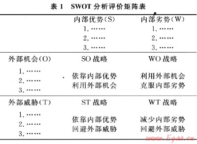 所謂SWOT分析,是指通過綜合考慮企業(yè)內(nèi)部條件和外部環(huán)境的各種岡素(包括內(nèi)部的優(yōu)勢(shì)和劣勢(shì)以及外部的機(jī)會(huì)和挑戰(zhàn)),對(duì)企業(yè)進(jìn)行系統(tǒng)評(píng)價(jià),從而選擇最佳經(jīng)營(yíng)戰(zhàn)略的方法。企業(yè)通過識(shí)別自身存在的優(yōu)劣勢(shì)及環(huán)境帶來的機(jī)會(huì)和威脅來做出迅速反應(yīng)和果斷決策,從而將調(diào)查得出的各種因素根據(jù)輕重緩急或影響程度等排序方式,構(gòu)造SWOT矩陣(表1)。