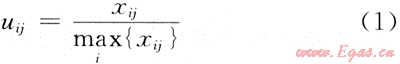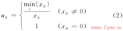 式中:xij為具體指標(biāo)值;uij為標(biāo)準(zhǔn)化指標(biāo)值;i=1,2,…,n;n-1,2,…,m(下同)。