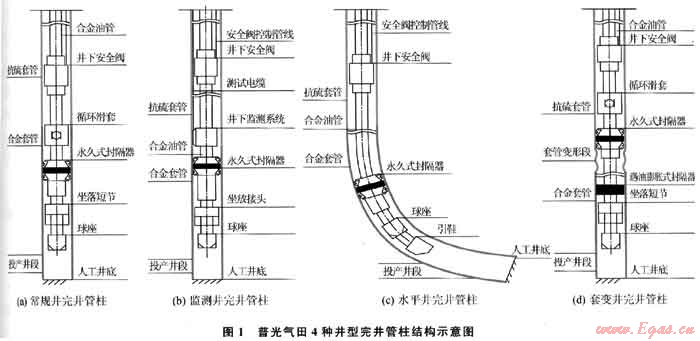 1) 普光高酸性氣田設計采用的常規(guī)井、監(jiān)測井、水平井、套變井等4種完井管柱,充分考慮到了高酚眭氣田的特殊安全要求,設計科學,針對性強。