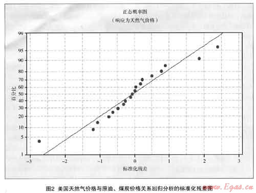 經(jīng)過回歸分析后,得出天然氣與原油、煤炭的價格關(guān)系為