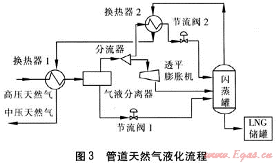 透平膨脹機(jī)、渦流管可替代傳統(tǒng)的節(jié)流閥調(diào)壓裝置,有效回收管道壓力能,具有較好的推廣應(yīng)用前景。在城市門站生產(chǎn)LNG不受發(fā)電或制冷所需的條件的限制,具有投資省、能耗低、操作簡(jiǎn)單、靠近用戶等獨(dú)特優(yōu)勢(shì),并可起到城市調(diào)峰的作用。