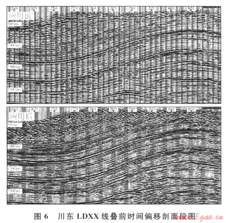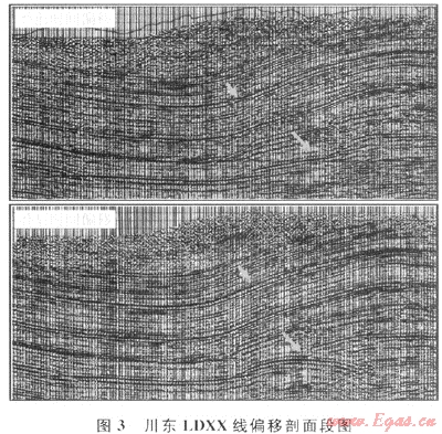摘要:目前,疊前時間偏移處理技術(shù)廣泛應(yīng)用于油氣田的地震勘探資料處理中,影響疊前時間偏移成像的最主要因素就是數(shù)據(jù)品質(zhì)。四川盆地東部地區(qū)由于地表條件復(fù)雜,資料噪聲較重,野外采集通常采用變化的觀測系統(tǒng)施工,部分地段炮檢距分布非常不均勻,造成資料品質(zhì)不能滿足疊前時間偏移的需要。通過對川東地區(qū)一條二維測線疊前時間偏移成像效果的試處理分析,總結(jié)出一套提高疊前時間偏移成像質(zhì)量的技術(shù)方法,即利用偏移前道集去噪技術(shù),提高道集資料信噪比;運用道內(nèi)插技術(shù),改變由于野外施工造成數(shù)據(jù)分布不均的現(xiàn)象。最終使得數(shù)據(jù)品質(zhì)能夠滿足疊前偏移處理的條件。