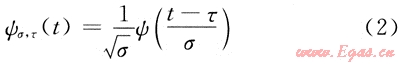 當(dāng)σ越大時,ψσ,τ(t)伸展越寬、波形越肥胖、主頻越低。當(dāng)σ越小,ψσ,τ(t)在時間軸上壓縮越強、波形越窄、主頻越高。ψσ,τ(t)是由小波母函數(shù)ψ(t)∈L2(R)在時間軸上經(jīng)伸縮與平移得到的[9],即