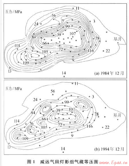 ① 威遠(yuǎn)49井,1972年投產(chǎn),逐月加大生產(chǎn)壓差,由1.37MPa上升到9.22MPa,僅230d就見(jiàn)地層水;而威23井,生產(chǎn)壓差一直保持在0.4MPa左右,帶水自噴生產(chǎn)期長(zhǎng)達(dá)13a之久。