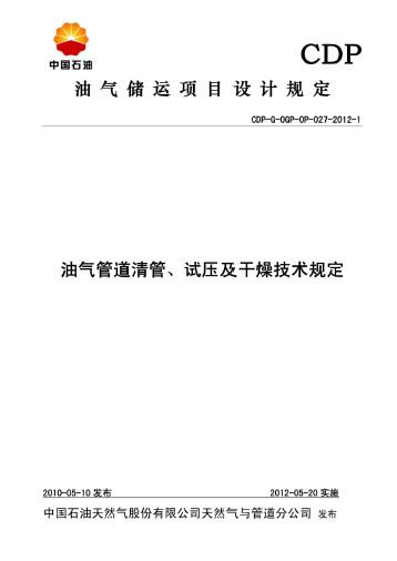 油氣管道清管、試壓及干燥技術規(guī)定CDP-G-OGP-OP-027-2012-1