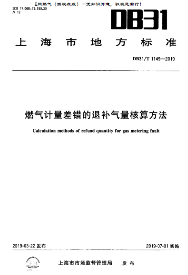 本標(biāo)準(zhǔn)適用于直接與供氣企業(yè)貿(mào)易結(jié)算的燃?xì)庥?jì)量裝置[工作壓力不大于0.4 MPa(表壓)的城市管道燃?xì)鈃發(fā)生計(jì)量差錯(cuò)退補(bǔ)氣量的核算。當(dāng)燃?xì)庥?jì)量裝置發(fā)生非正常計(jì)量或其他計(jì)量差錯(cuò)時(shí),退補(bǔ)氣量的核算亦可參照?qǐng)?zhí)行。