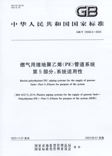 燃?xì)庥寐竦?a href=http://m.wxedr.com/e/tags/?tagname=%E8%81%9A%E4%B9%99%E7%83%AF target=_blank class=infotextkey>聚乙烯(PE)管道系統(tǒng) 第5部分:系統(tǒng)適用性GB/T 15558.5-2023